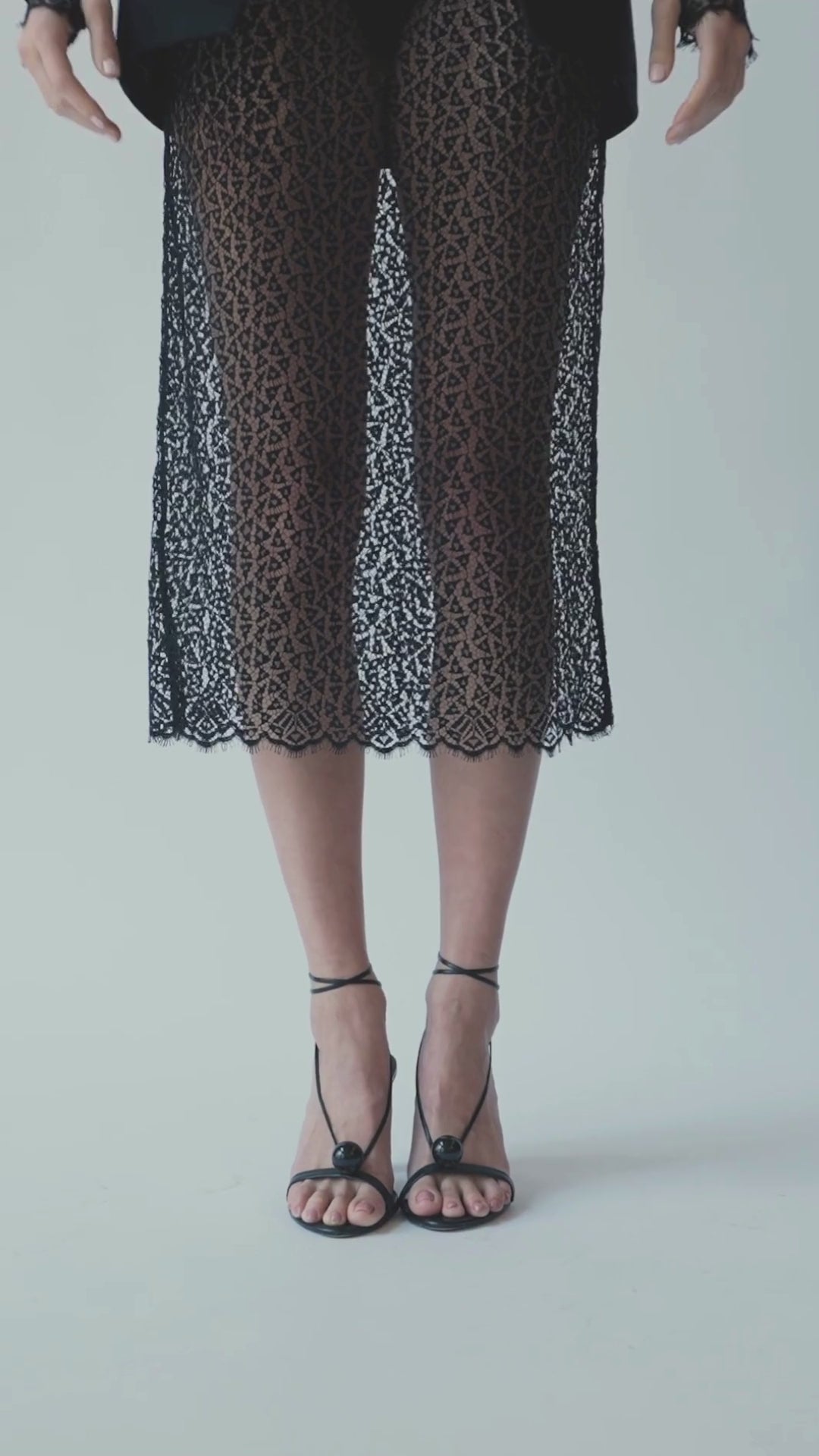 Cut from non-stretch bio French Chantilly lace, this statuesque mid-length skirt features a chic scallop hem and elasticated viscose soft waistband. Style with the Mireille Chantilly Lace Bodysuit and pumps for an evening out or underpin with The Sensory Cashmere Silk Bodysuit.